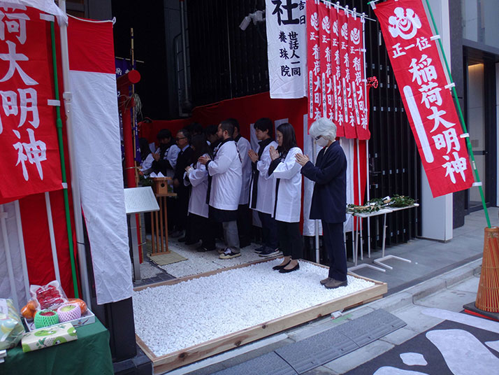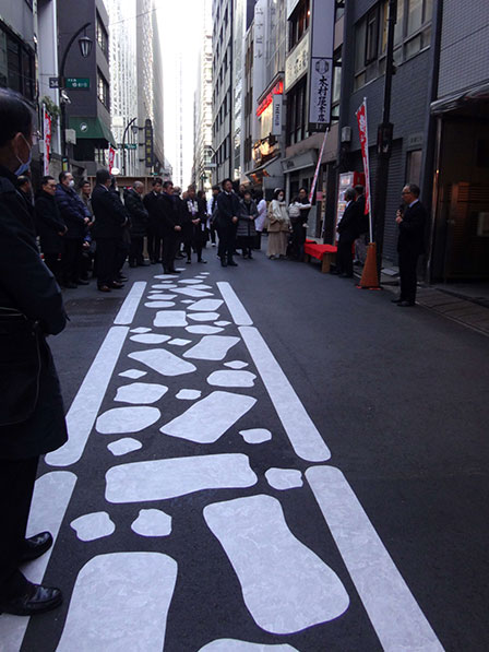 この初午祭では、1日だけ養珠院通りを車両通行止めにして、於満稲荷神社に相応しい通りを目指して、沿道や地域に住む皆様が心地よく過ごせる場に、通りのデザインを通じてこの通りの将来像、あり方を考える場なればと思います。